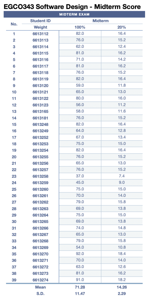 EGCO343 – Midterm Exam Score